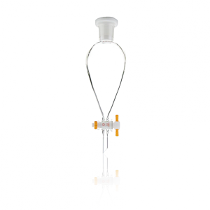 $485.52PYREXPLUS Coated 250mL Squibb Separatory Funnel, PTFE Product Standard Stopcock, Glass Standard Taper Stopper