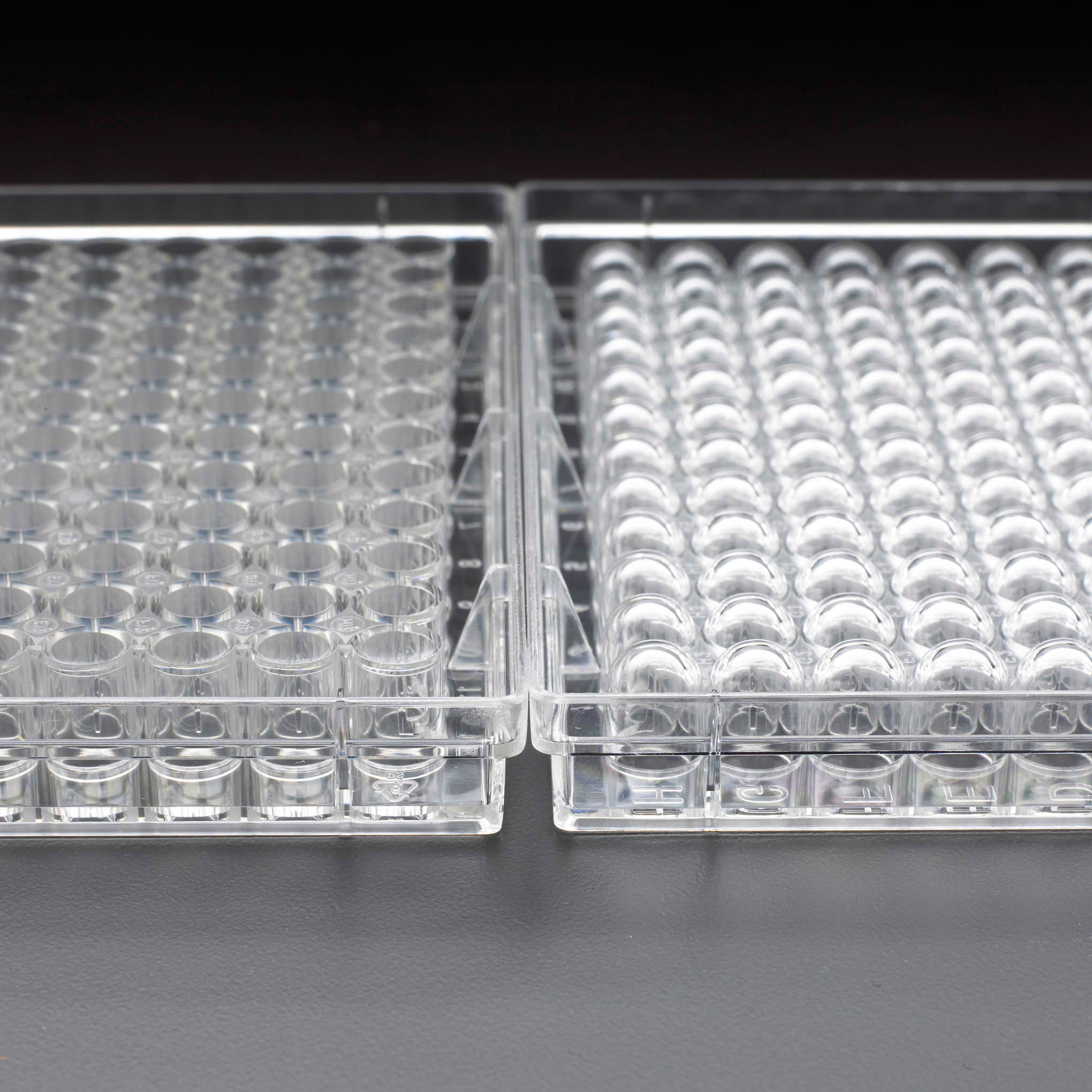 Plates are labeled with alphanumeric markings for easy identification of individual wells