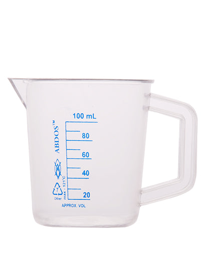 Abdos Printed Beakers with Handle, TPX Polymethyl pentene (PMP) 100ml, 6/CS