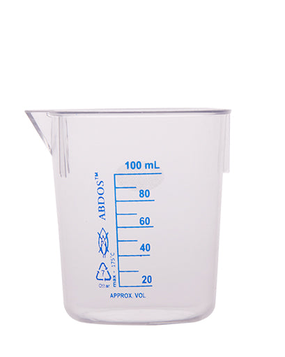 Abdos Printed Beakers without Handle, TPX Polymethyl pentene (PMP) 100ml, 12/CS
