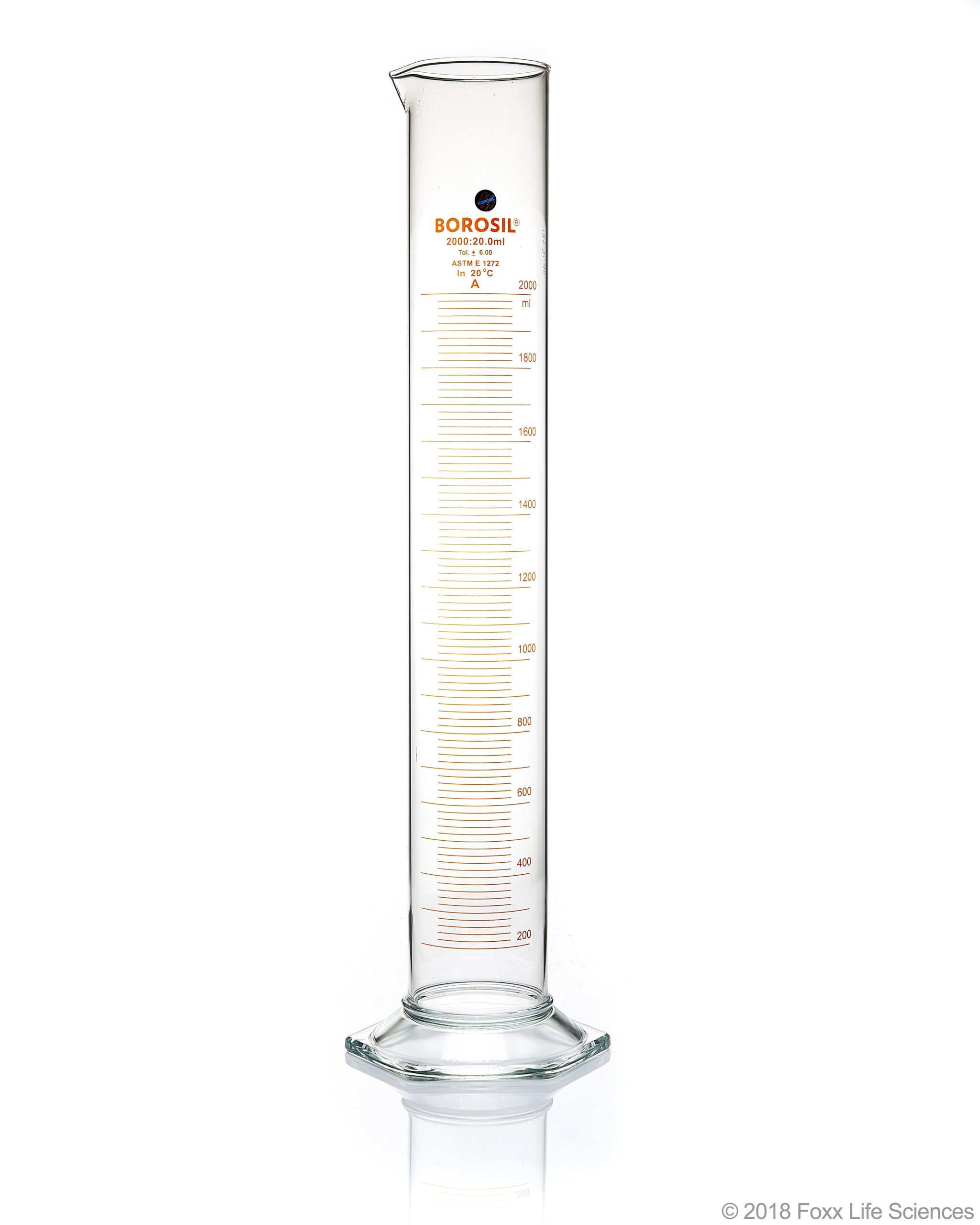 Borosil Cylinders, Class A, TC, 2,000mL x 20.0mL, Batch Cert