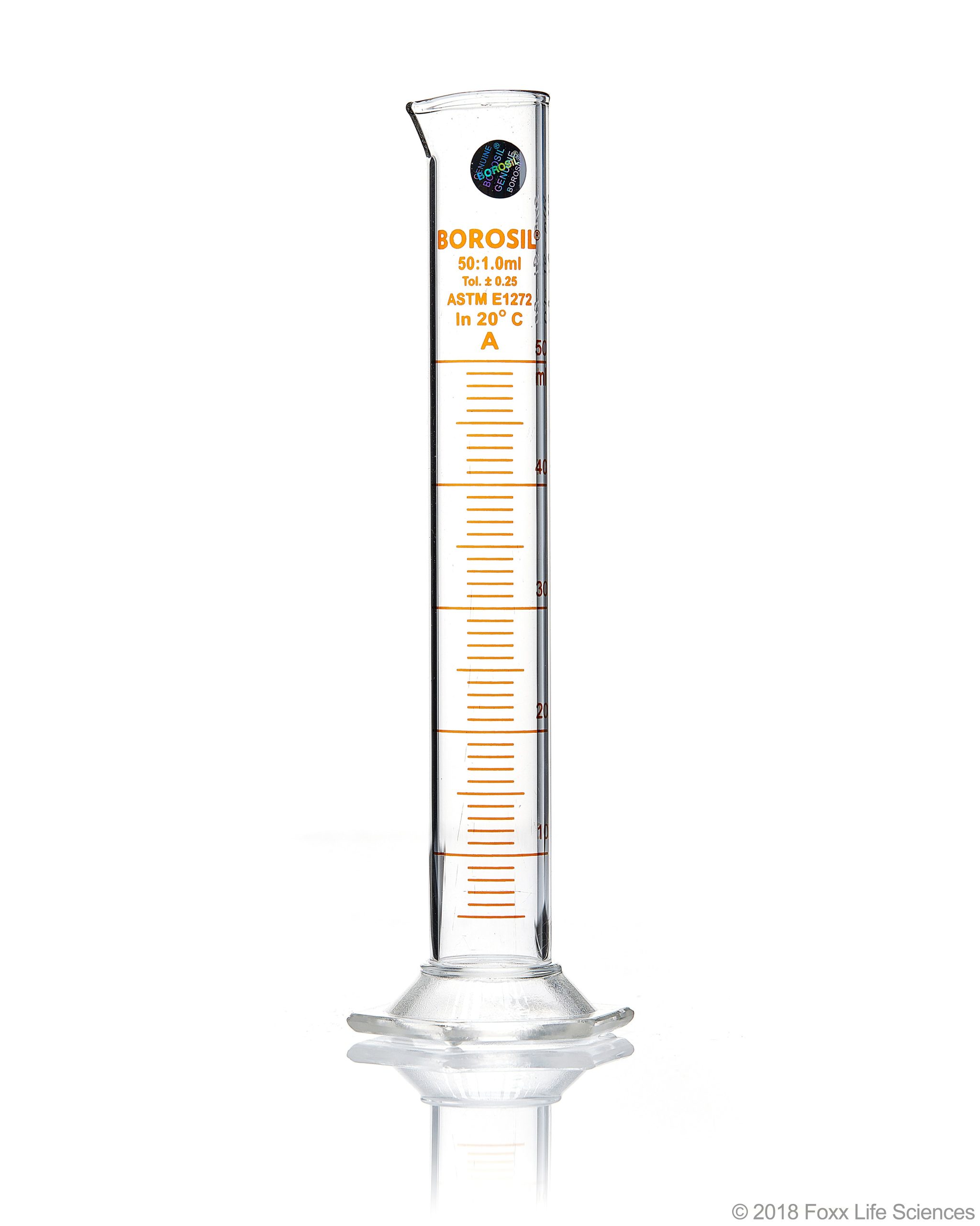 Borosil Cylinders, Class A, TC, 50mL x 1.0mL, Batch Cert