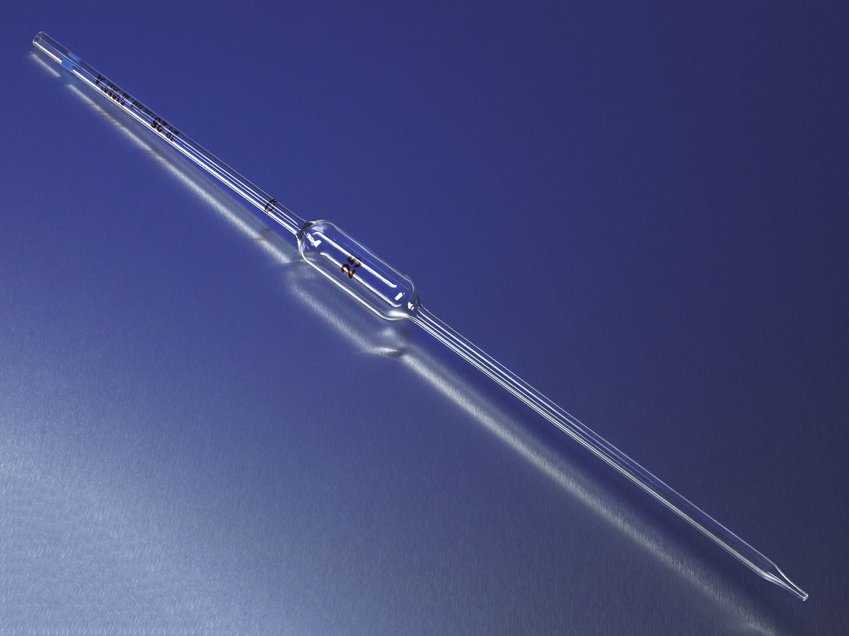 Volumetric Pipette Bulb, Class A, ASTM 969 USP Type I, Individual Certification, 9 mL , Part number 7101709-FL , Buy now from Borosil at Laboratory Disposable Products. Borosil brand Pipettes are made of specially-selected, heavy wall, machine-drawn, borosilicate accurate, bore glass tubing. They have precision formed jets, and bevel ground ends that resist chipping. The graduations are made in durable white enamel that is resistant to laboratory reagents and repeat washing. All Pipettes are individually measured and then marked. The uniformity of bore ensures accuracy between any two readings and they are autoclavable. The Class A Volumetric Transfer Pipettes are generally used for accurate measurement and decanting of liquids. Comes calibrated for delivery and complies with ASTM E-969-02. Each pipette is coded with a unique number supplied with the calibration certificate giving the exact volume with traceability to national standards.