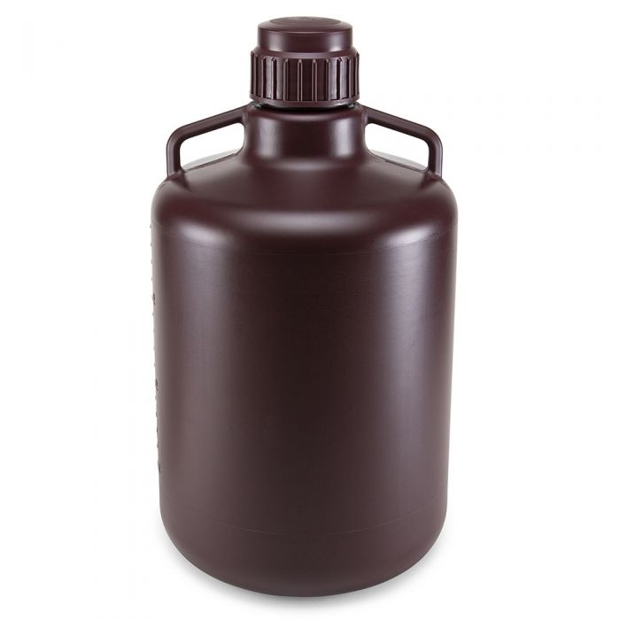 Carboy, Round with Handles, Amber HDPE, Amber PP Screwcap, 20 Liter, Molded Graduations, Autoclavable