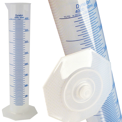 Cylinder Printed Squat Graduated, PP 4L, 1/EA, Part number 537835-4000-DY, Buy now from Dynalon at Laboratory Disposable Products. The squat cylinder design makes these translucent polypropylene products more stable on the bench than traditional glass or plastic cylinders and results in fewer spills or more serious accidents. Squat cylinders are easier to handle, particularly in confined spaces such as fume hoods. The lower form means you require less overhead storage space. Not only are the graduations molded into the product, but they are also overprinted in attractive Azlon blue ink. These cylinders have a unique self draining base that will allow wastewater to drain when inverted in a dishwasher.