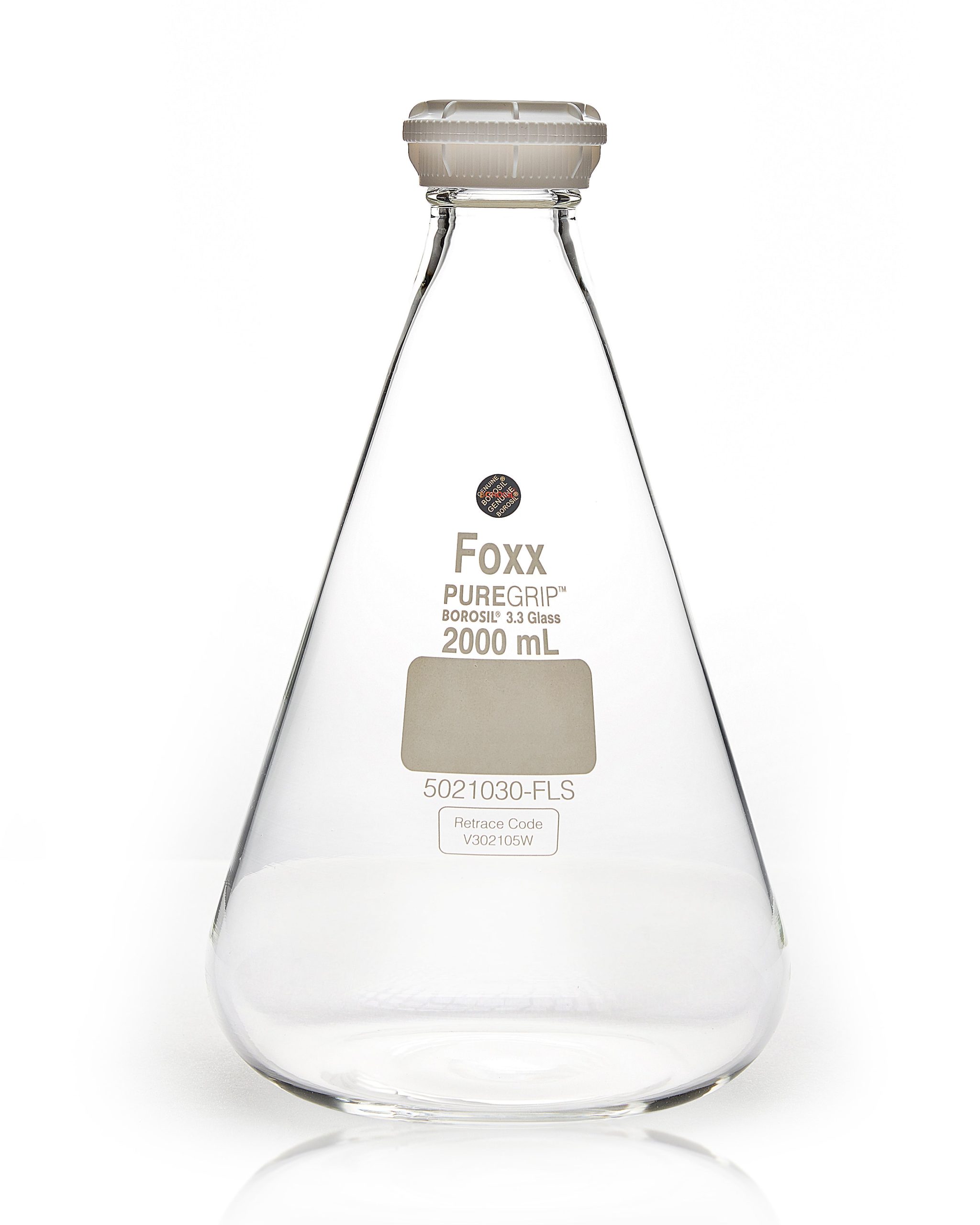 PUREGRIP® Glass Flasks, Erlenmeyer, Clr, GL45 VersaCap®, 2,000mL , Part number 5021030-FLS-FL , Buy now Fox Life Science at Laboratory Disposable Products. Foxx Life Sciences EZBio Single Use PETG and PC Sterile Media Bottles with Tubing and Vent Filters are perfect for fluid transfer and storage. Assemblies are made entirely with USP Class VI components and Gamma Irradiated in the United States. Assemblies take advantage of Foxxs patented VersaCap technology which means there is no machining necessary to produce the product. Perfect for single use applications and to phase out costly stainless steel apparatuses that are expensive to clean and validate. Tube material: TPE