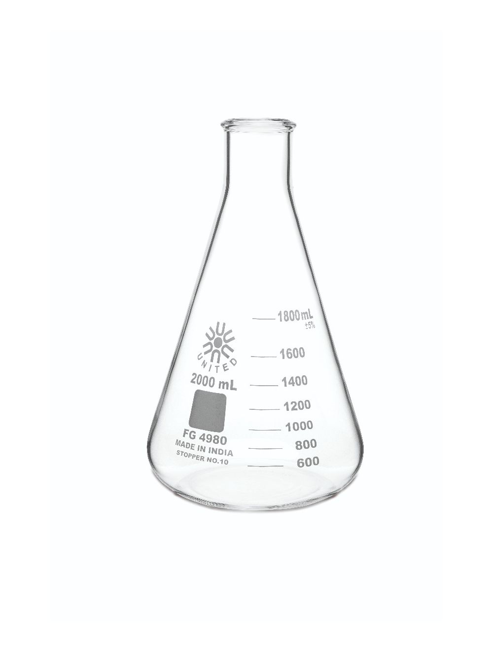 United Scientificâ„¢ ERLENMEYER FLASK, NARROW MOUTH, BOROSILICATE GLASS, 2000ML, CASE