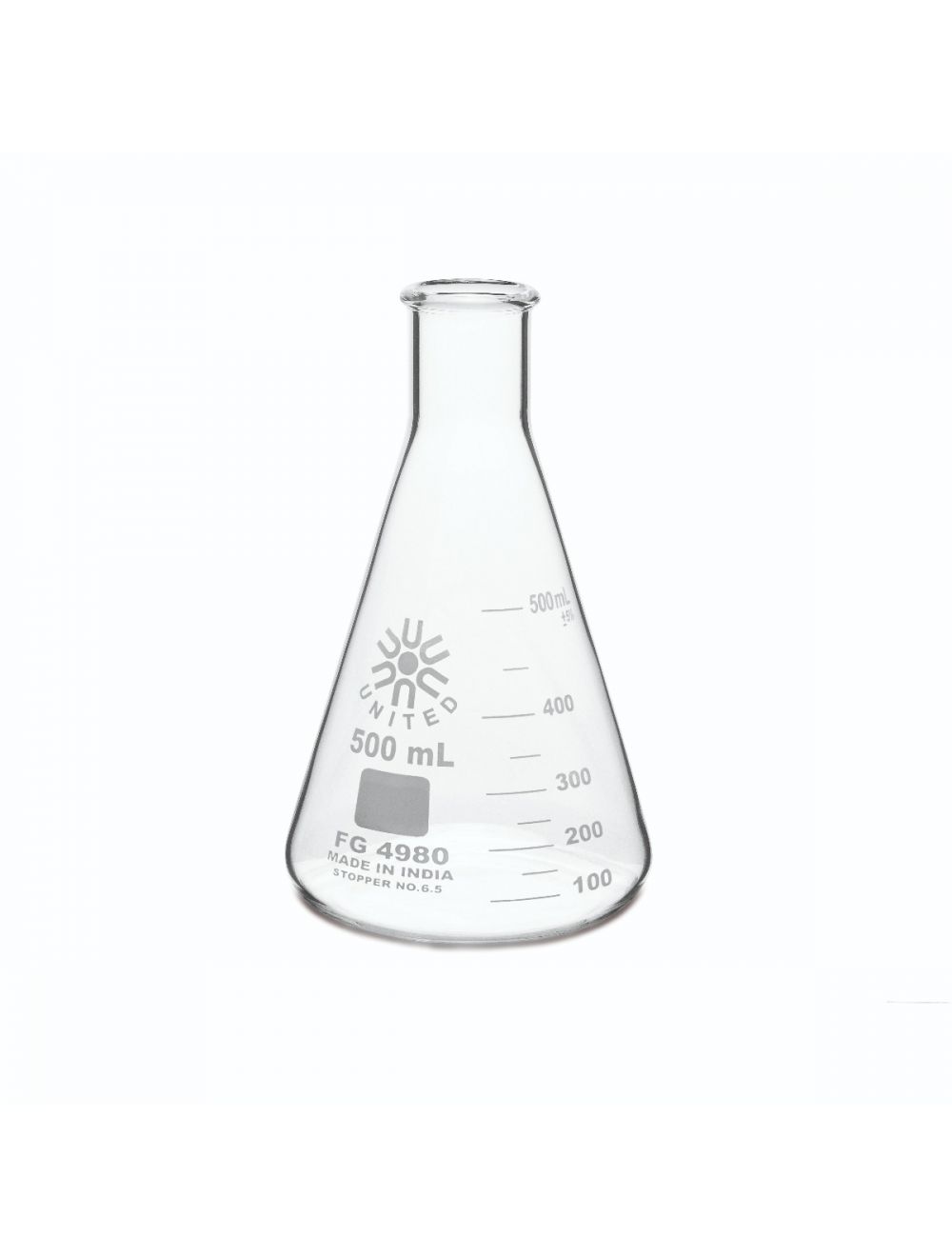 United Scientificâ„¢ ERLENMEYER FLASK, NARROW MOUTH, BOROSILICATE GLASS, 500ML