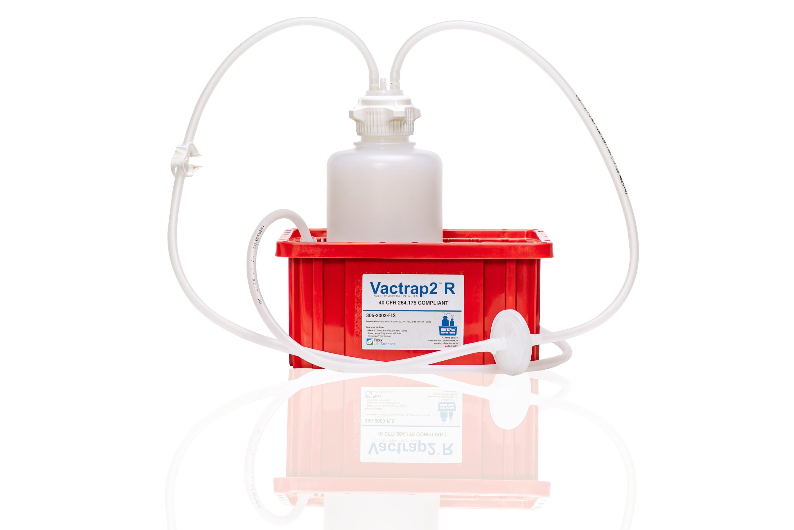 Vactrap™2 Round, 2L, PP, RED BIN, 1/4″ ID TUBING , Part number 305-2003-FLS-FL , Buy now Fox Life Science at Laboratory Disposable Products.
