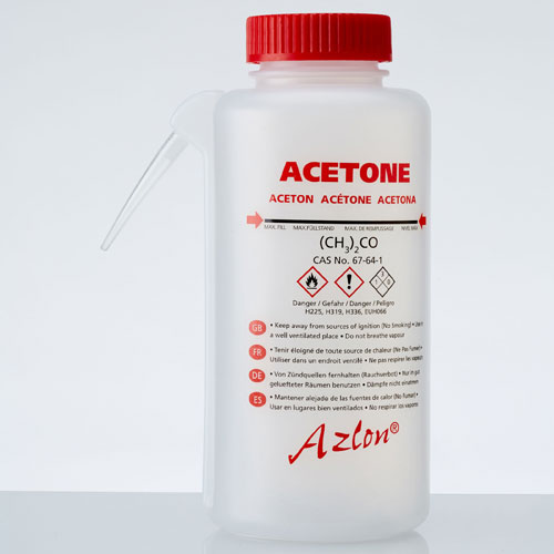 Washbottle Integ GHS Acetone, LDPE 500mL, 5/CS, Part number 506365-0001-DY, Buy now from Dynalon at Laboratory Disposable Products. Range of large bottles in a choice of three sizes