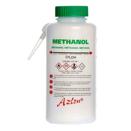 Washbottle Integ GHS Methanol, LDPE 500mL
